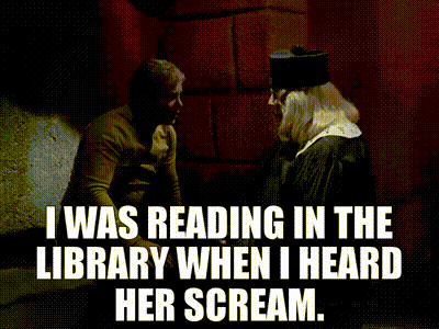 내가 도서관에서 책을 읽고 있는데 그녀의 비명을 들었어.