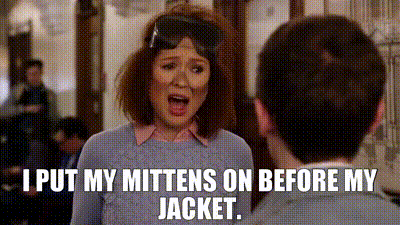 나는 벙어리장갑을 끼고 난 '다음에' 재킷을 걸쳤어.