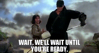 우리는 당신이 준비될 때까지 기다릴 것이다(= 당신이 준비가 되면 시작하자고)