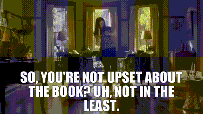 ▷ So, you're not upset about the book? Uh, not in the least