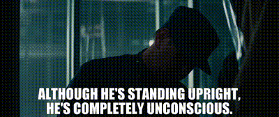 ▷ Although he's standing upright, he's completely unconscious