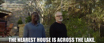 가장 가까운 집은 그 호수 건너편에 있다(= 화자를 기준으로)