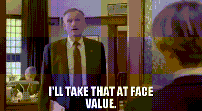 영어 표현 'take[accept] something at face value'는 위 영영 사전의 정의를 살펴보면, (어떤 상황이나 누군가의 말을 사실이 아닐지라도 숨겨진 의미가 없다고 생각하며 나타난 그대로) 받아들인다는 의미입니다.