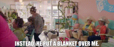대신에 그는 내 위에 담요를 씌웠습니다(= 여기서 담요는 화자보다 큽니다)