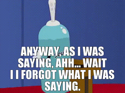 ▷ Anyway, as I was saying, ahh... wait I I forgot what I was saying