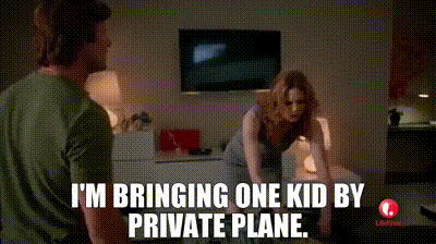 ▷ I'm bringing one kid by private plane