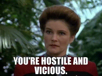 hostile은 사람의 태도나 어투가 '공격적인, 적대적인'을 의미합니다.