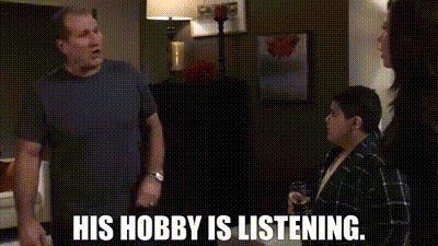 ▷ His hobby is listening