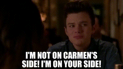 ▷ I'm not on Carmen's side! I'm on your side!