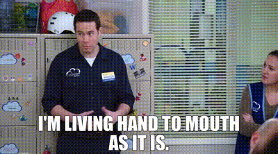 ▷ I'm living hand to mouth as it is