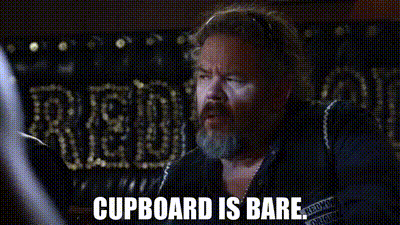 bare은 방이나 찬장, 선반, 수납공간 따위가 비어 있는 상태를 나타냅니다.