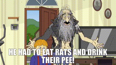 그는 쥐를 먹고 그들의 오줌을 마셔야 했어!