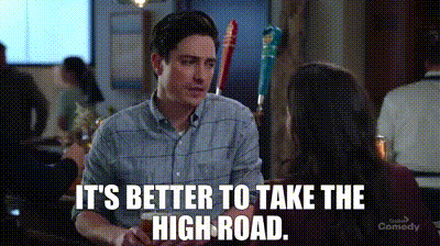정리하자면, 쉽지 않은 상황에서도 '도덕적으로 올바르게/소신 있게 행동, 발언하다'라는 의미로 'Take the high road'를 사용했습니다.