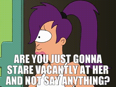 ▷ Are you just gonna stare vacantly at her and not say anything?