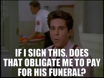 ▷ If I sign this, does that obligate me to pay for his funeral?