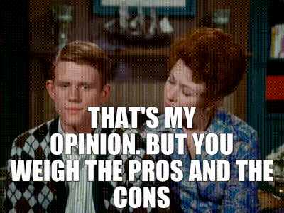 이건 내 의견이지 네가 장단점을 따져봐야 해.