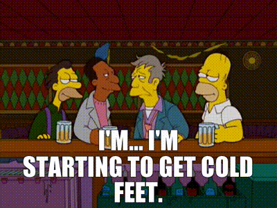 1. get cold feet :(계획했던 일에 대해) 초조해지다, 주눅 들다, 겁이 나다, 용기를 잃다.