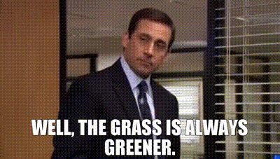"the grass is always greener, come by, hit it off" 남의 떡이 더 커 보이다?