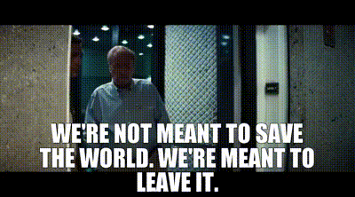 ▷ Now you need to tell me what your plan is to save the world. We're not meant to save the world. We're meant to leave it.