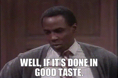 무엇이 "in good taste"에 있다는 말은 어떤 상황에서 불쾌감을 주지 않으며 적절한 것이라는 의미입니다.