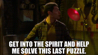 ▷ You can sit there and keep complaining, or you can get into the spirit and help me solve this last puzzle.
