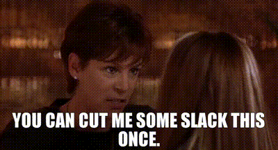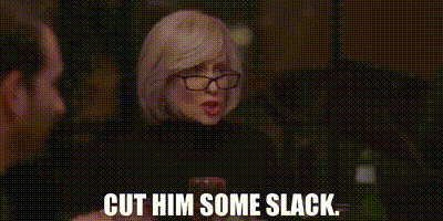 여기서 slack은 과거에 느슨한 로프를 의미했습니다. 오늘날 "cut me some slack"은 타이트한 제약을 풀어준다는 의미로 현재 힘든 시기를 겪고 있으니 보통 때보다 덜 몰아붙이거나 다그치지 않고 행동에서 어느 정도 자유재량을 준다는 뜻입니다.