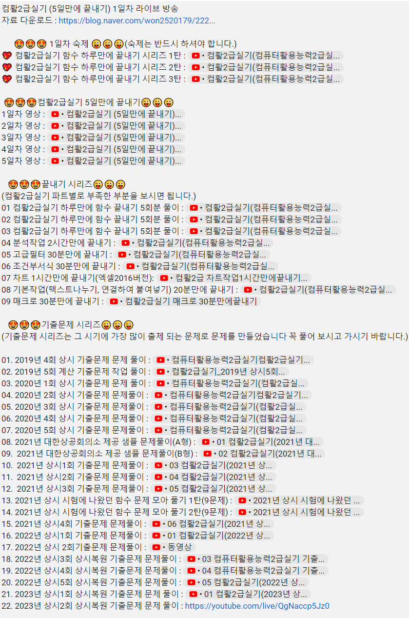 저도 초반에 컴활 2급 실기를 어떻게 하면 단기간에 효율적으로 합격할 수 있는지 알아보려고 10군데 이상 블로그 돌아다니면서 확인해 봤어요. 근데 10명 중 9명은 전부 기풍을 추천하더라고요. 그래서 시험 3일전 주저 없이 기풍선생님 유튜브 영상을 하루에 3~4시간씩 보면서 공부했어요. 기풍선생님이 하라는 대로 따라 하니 시험 당일이 되어도 "아, 뭔가 준비되었다"는 느낌이 오더라고요. 기풍선생님 영상을 들으면서 느낀 장점들을 하나씩 나열해 볼게요.