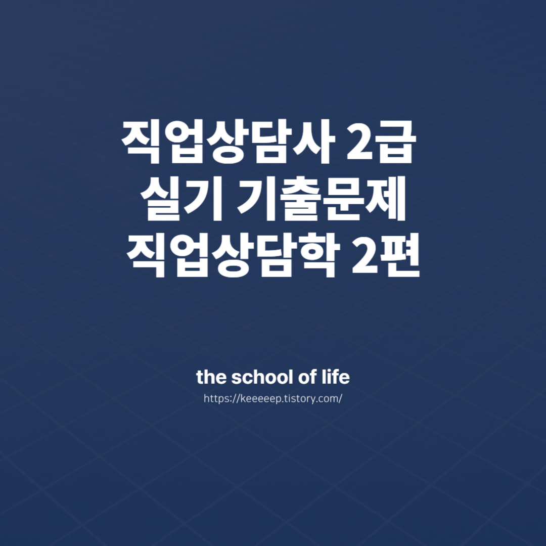 | 직업상담사 2급 실기 기출문제 - 직업상담학 1편 (1) | 2023.06.21 |