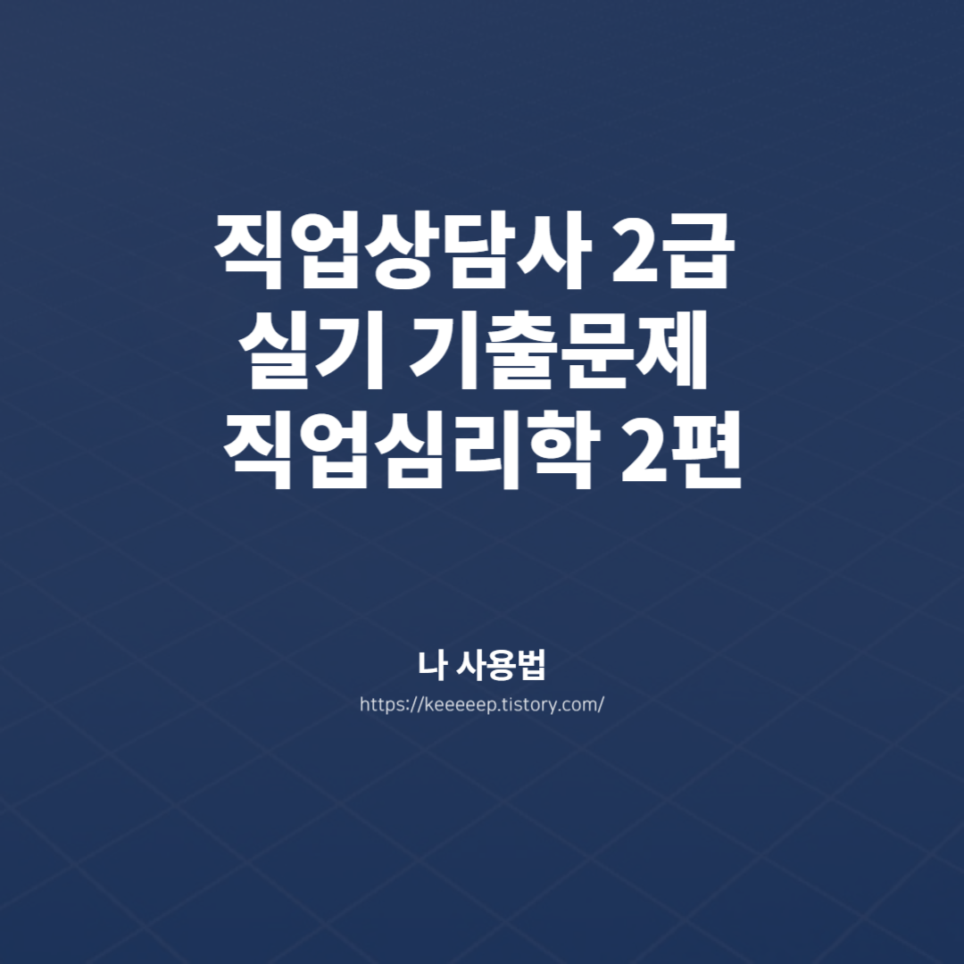 | 직업상담사 2급 실기 기출문제 - 직업상담학 4편 (1) | 2023.07.04 |