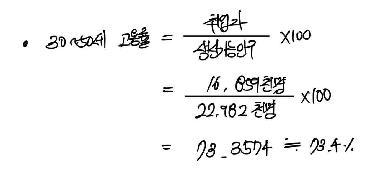 (1) 30~50세 고용률을 계산하시오