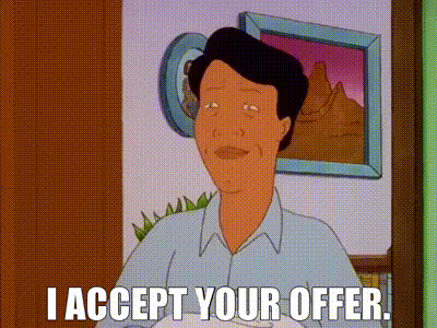 offer에는 의견이나 계획이 없습니다. 주고받는 행위만 있습니다. 수락하면 받고 거절하면 안 받는 거죠.